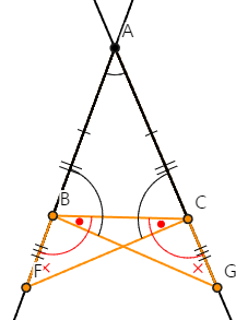 그러므로 [명제 4]에 따라 남은 각들이 서로 같다. (∠AFC=∠AGB, ∠ACF=ABG)
