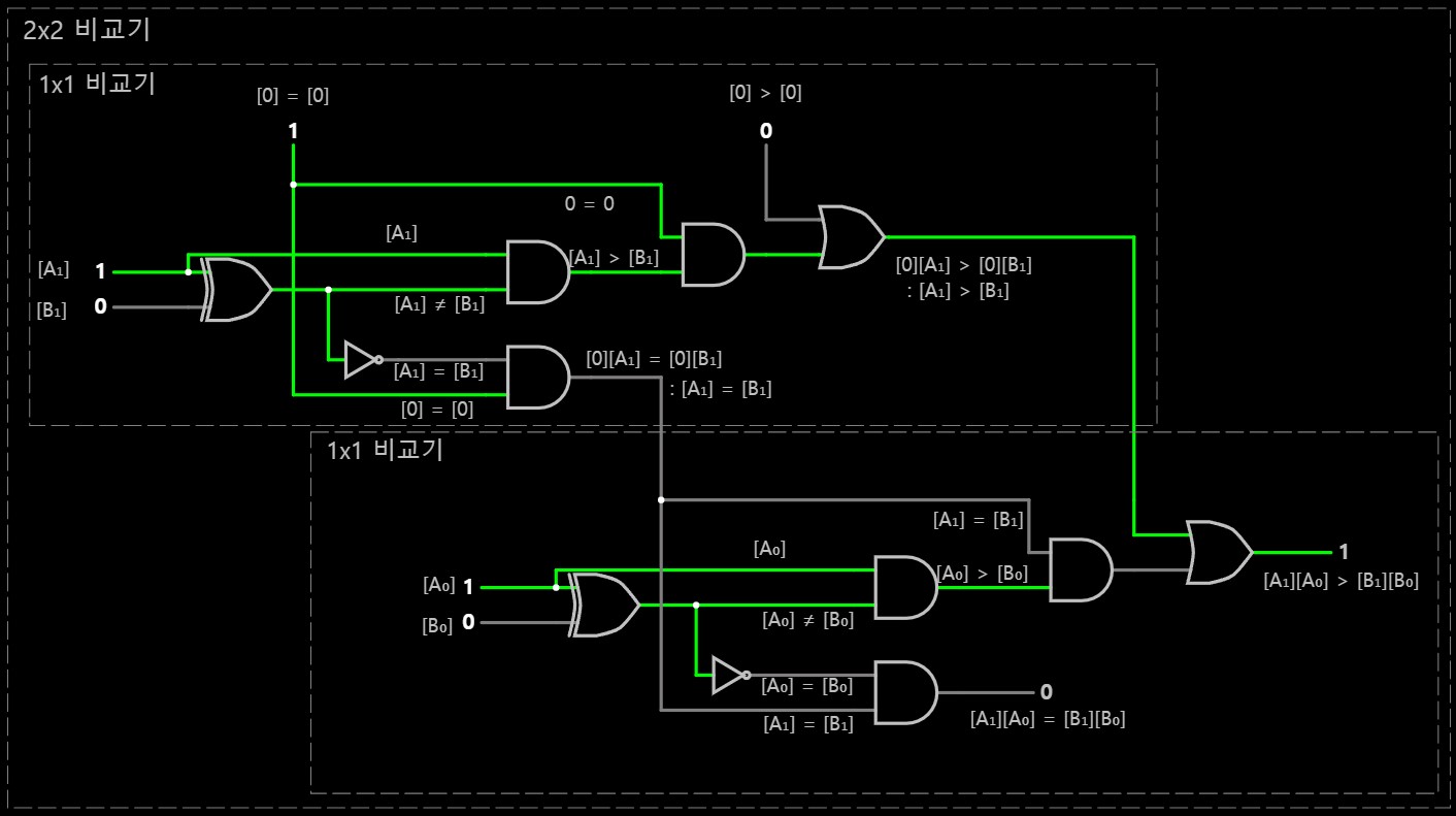 < 상위 비트를 고려한 1x1 비교 연산 회로 >